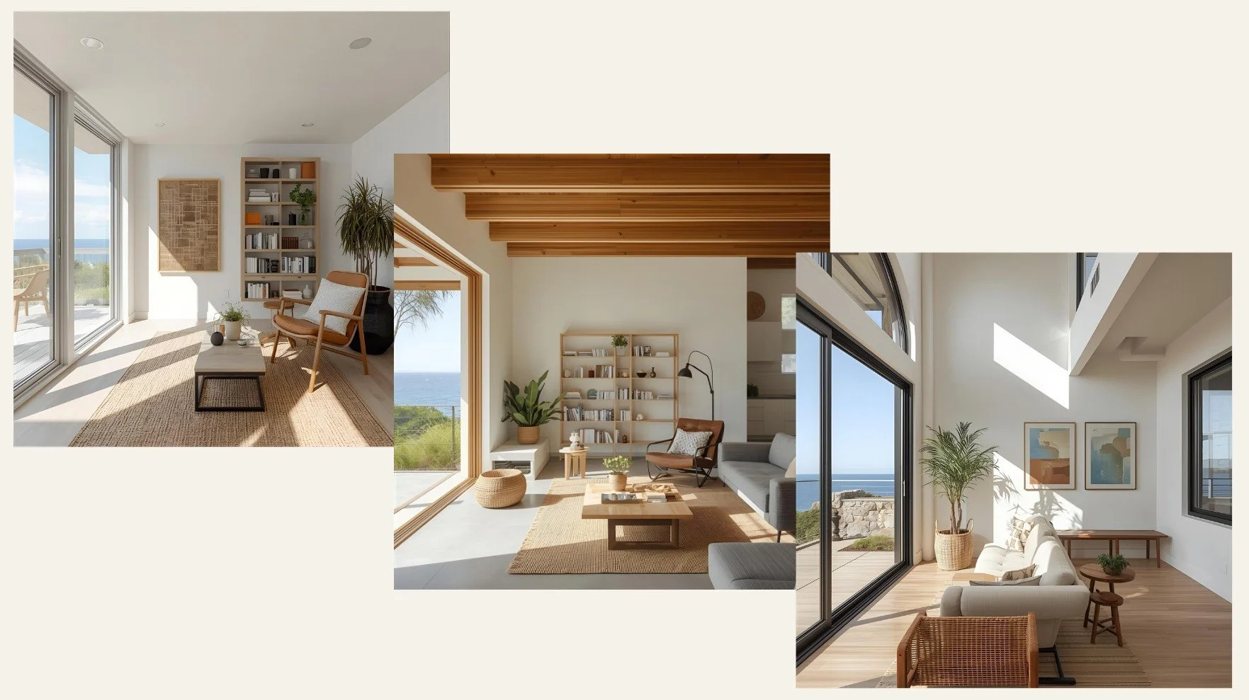 A whole-home study focused on daylight, natural materials, and a calm palette. This concept demonstrates circulation changes, a refined materials palette, and a procurement direction tuned for coastal longevity.